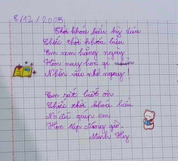 Và có lẽ, điều đẹp nhất mà việc viết mang lại, không chỉ là những bài thơ hay, những mẩu chuyện ý nghĩa, mà là niềm tin của trẻ vào chính tiếng nói của mình – một hành trang âm thầm nhưng bền bỉ theo con trên hành trình lớn lên.